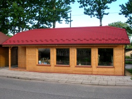 Zgrabne i estetyczne domki drewniane w konstrukcji szkieletowej bez poddasza z dużymi witrynami podkreślającymi przeznaczenie. Mogą być postawione na bloczkach (nietrwale związane z gruntem).